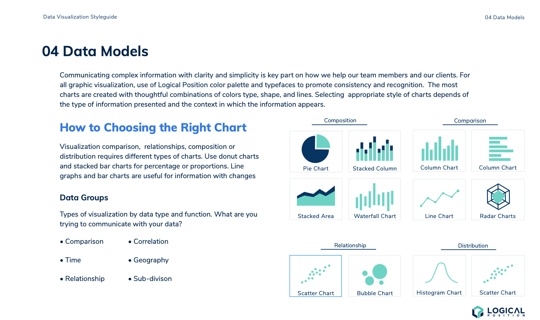 As part of Logical Position’s ongoing digital transformation and design system initiative, I developed a company-wide Data Visualization Style Guide to establish consistency, clarity, and visual hierarchy across all dashboards, reports, and analytics tools.Before this project, different departments were creating their own reporting layouts—resulting in inconsistent color usage, misaligned legends, unclear typography, and accessibility issues. The lack of standardization made it difficult for clients and internal teams to interpret key metrics at a glance.My goal was to create a unified visual language for data presentation that aligned with LP’s brand system while improving usability and comprehension across internal and client-facing platforms.
